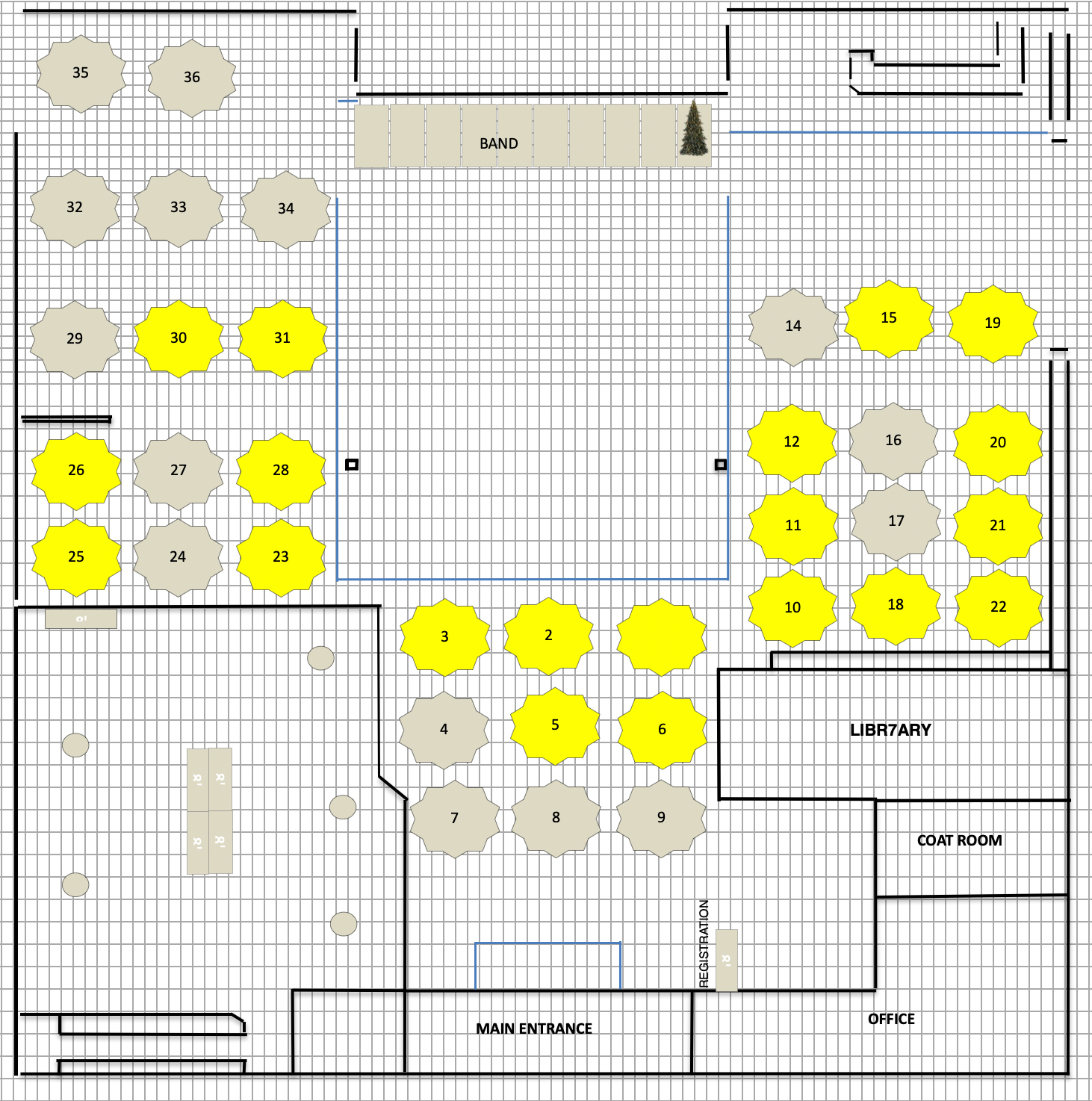 Availability: Review the chart below. Tables marked in yellow are already reserved.