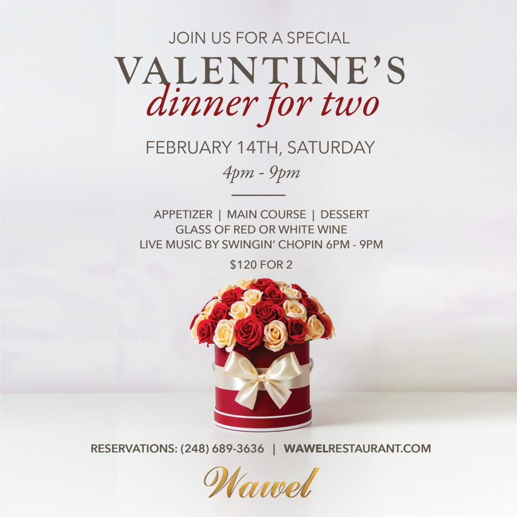 Valentine’s Day is almost here, and we would be honored to host you and your special someone for a truly romantic evening. On Friday, February 14, we are offering an exclusive Dinner for Two from 4:00 PM to 9:00 PM.
