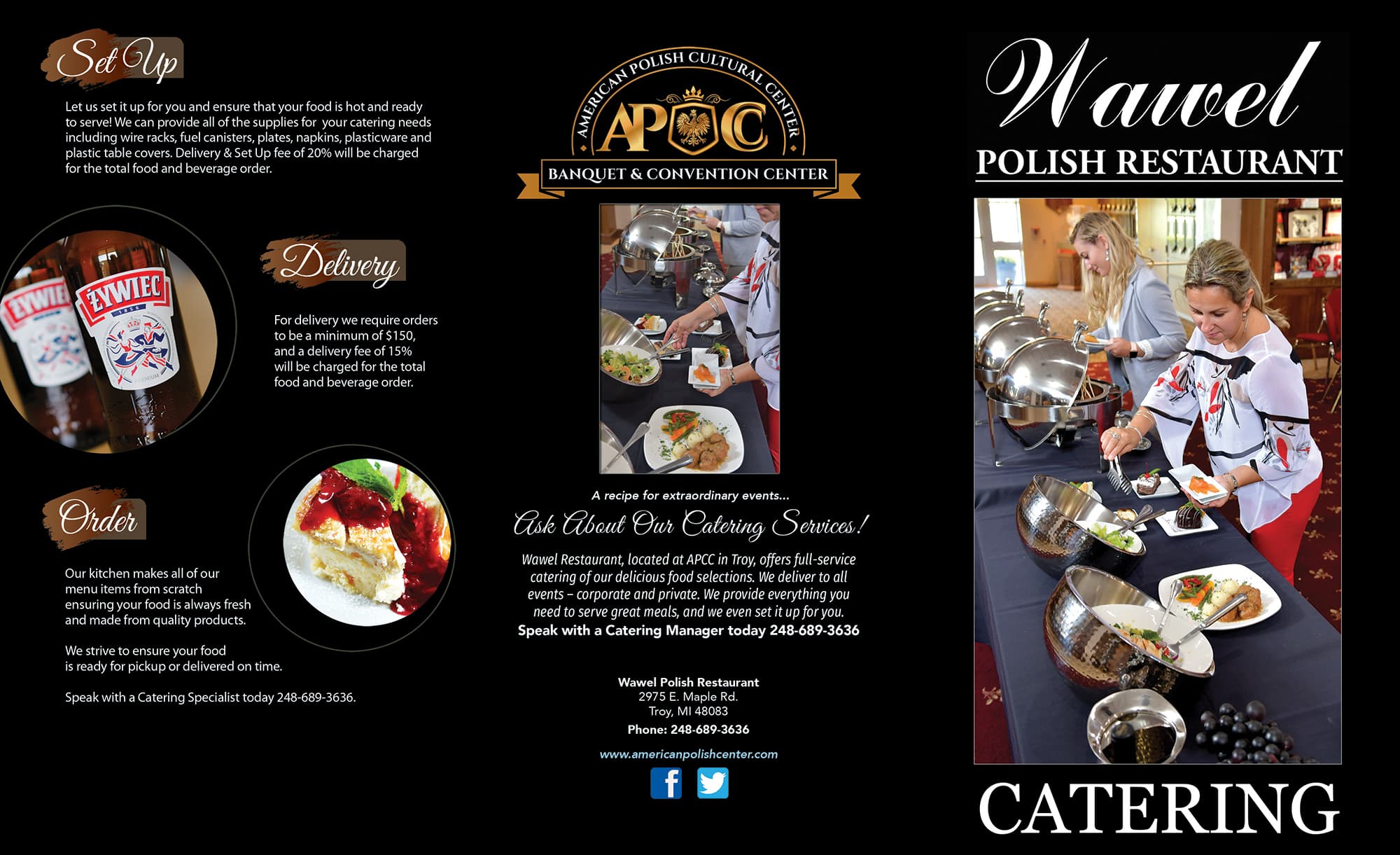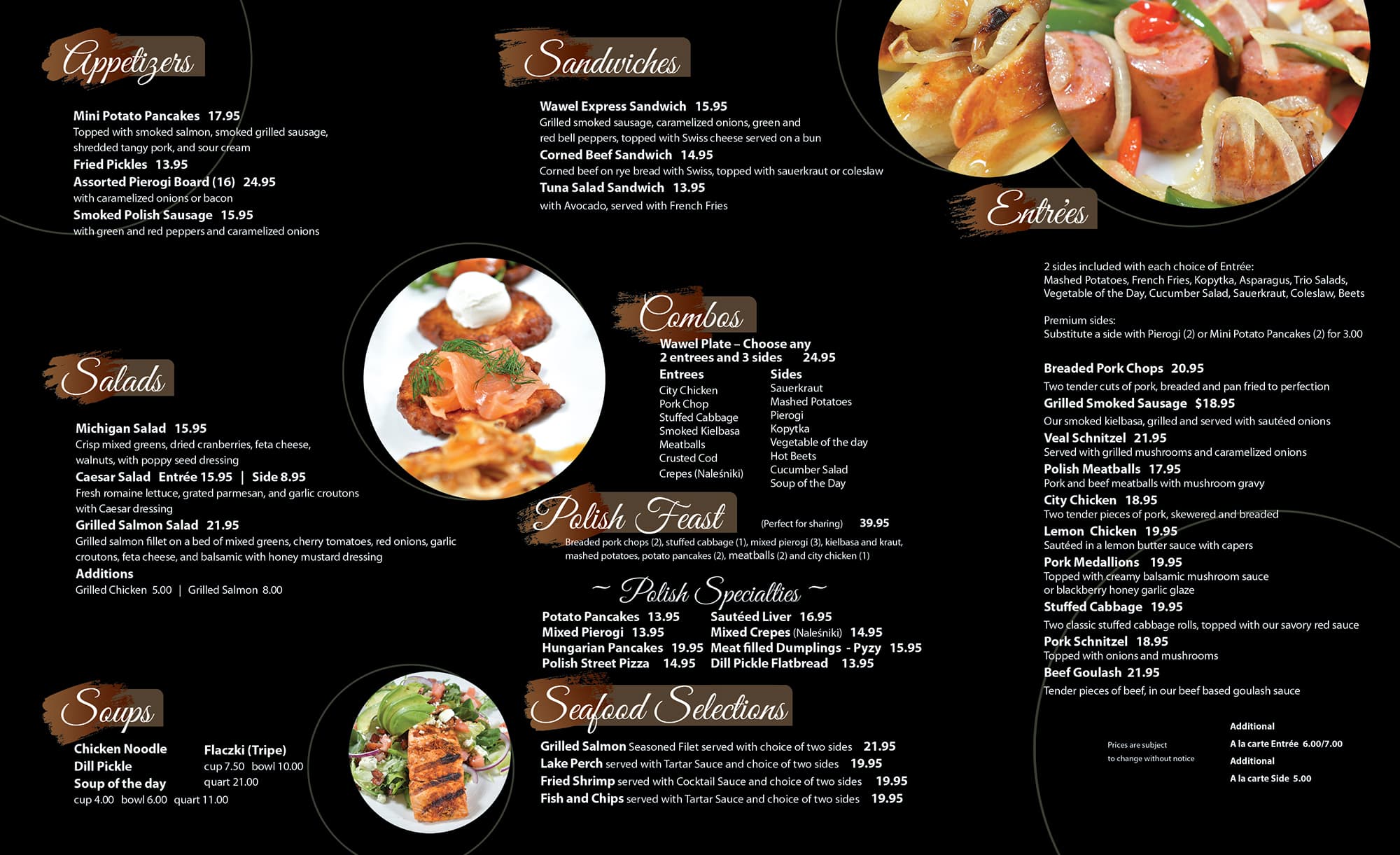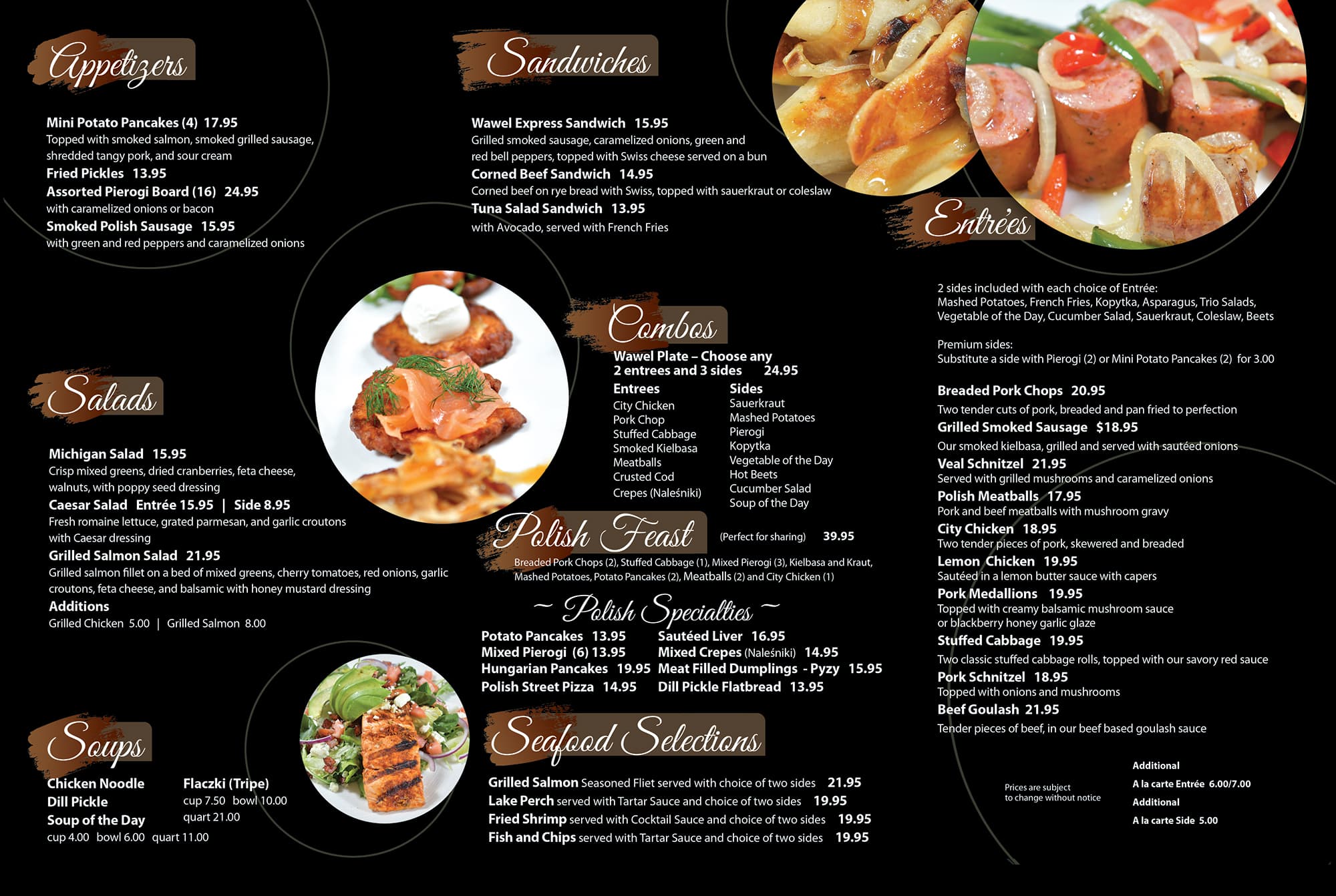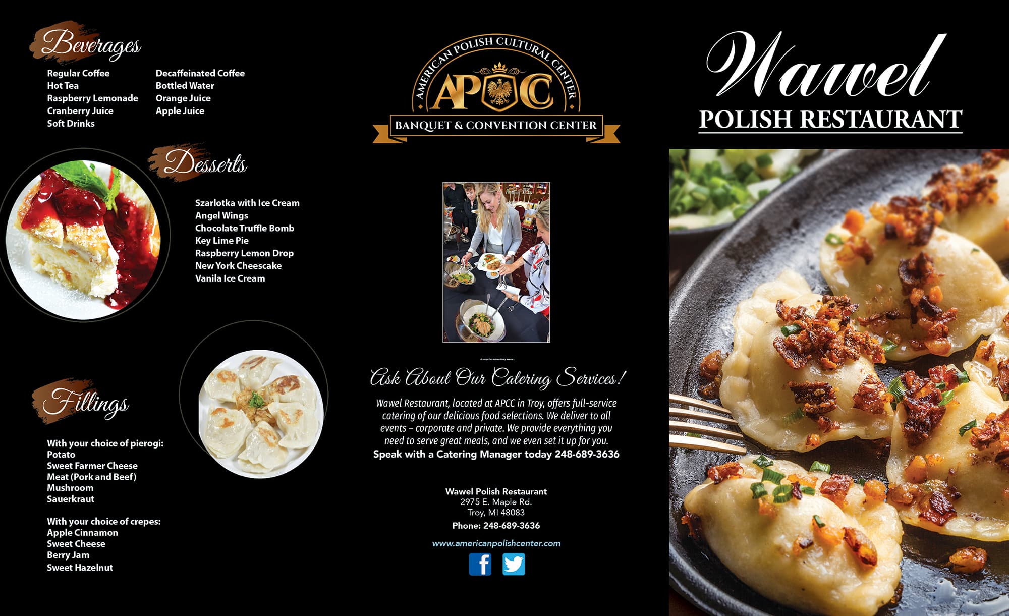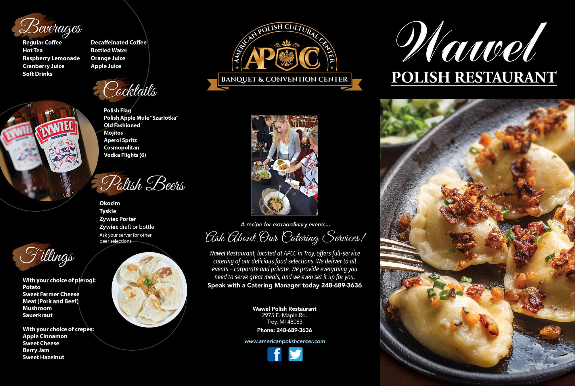 Restaurant & Carry Out Menus Wawel Restaurant Menu (PDF) Carry Out Menu (PDF) Catering Menu (PDF) Children’s Menu (PDF) Dessert Menu (PDF) Polish Restaurant Restaurant Menu Carry Out Menu Catering Menu